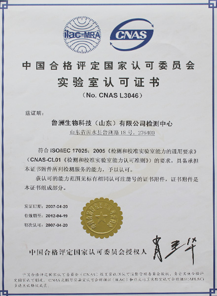國(guó)家實(shí)驗(yàn)室認(rèn)可證書